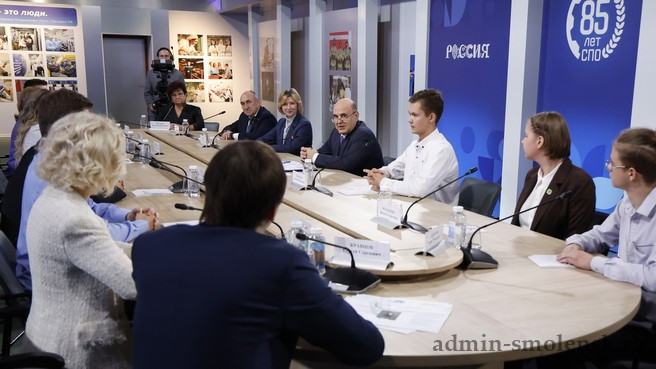 Председатель Правительства осмотрел выставку и в режиме телемоста пообщался с победителем и призёрами Всероссийского конкурса среди педагогических работников системы СПО «Мастер года». Также состоялась встреча Михаила Мишустина с победителями и призёрами национальных чемпионатов профессионального мастерства, конкурса «Мастер года», студентами и директорами ведущих кластеров федерального проекта «Профессионалитет».