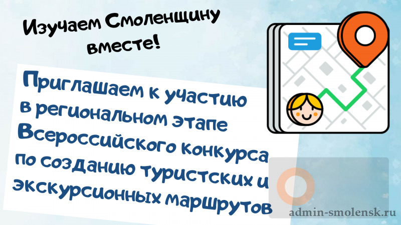 Конкурс проводится с целью создания познавательных туристских и экскурсионных маршрутов для детей по Смоленской области. Маршруты должны знакомить детей с богатой историей, самобытной культурой, вековыми традициями и живописной природой родного края, а также с именами выдающихся личностей, родившихся или живших на Смоленщине, чей вклад оставил неизгладимый след в развитии не только нашего региона, но и России в целом.
