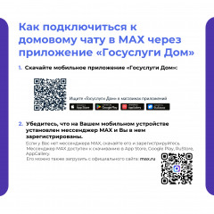 Домовые чаты в национальном мессенджере MAX позволяют жителям мгновенно получать информацию о плановых работах, отключениях, чрезвычайных ситуациях, коллективно обсуждать насущные проблемы дома, оперативно фиксировать нарушения (с фото‑ и видеоподтверждением), представлена возможность задать вопрос и получить ответ от представителей управляющей организации без походов в офис и многое другое.