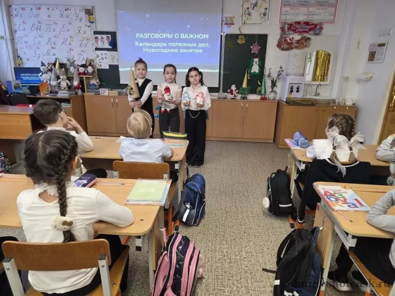 В преддверии Нового года, 29 декабря, занятие «Разговоры о важном» было посвящено теме «Календарь полезных дел. Новогоднее занятие».