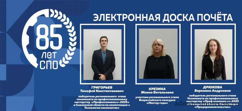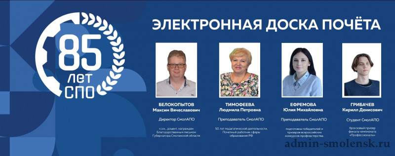 Стартовал уникальный проект «Электронная доска Почёта» в профессиональных образовательных организациях Смоленской области!