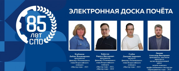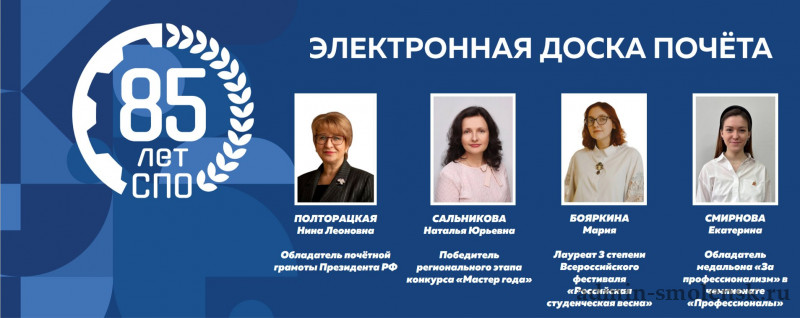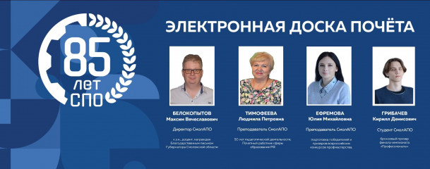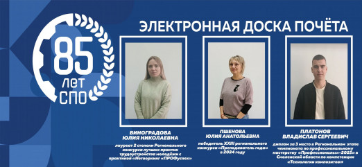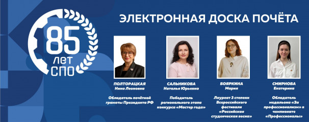 В рамках празднования 85-летия системы среднего профессионального образования в профессиональных образовательных организациях стартовал проект «Электронная доска Почёта».