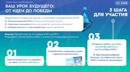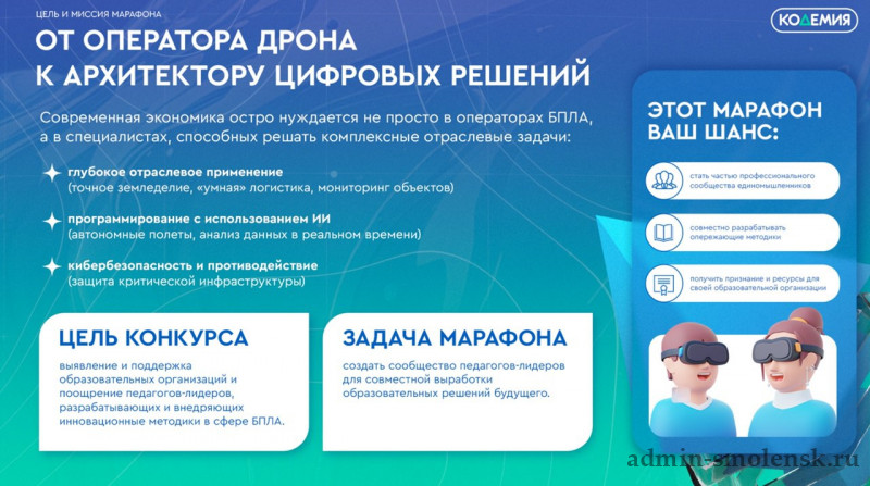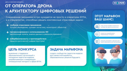 Цель марафона - поддержка и развитие профессионального сообщества преподавателей и руководителей образовательных организаций, реализующих дисциплины и специализированные модули в области беспилотных авиационных систем (БПЛА) и программирования. Участники смогут выработать эффективные стратегии подготовки кадров, соответствующие современным требованиям и перспективам рынка труда, а также углубить свои компетенции в областях беспилотных технологий и программирования.