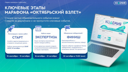 Центр обучения «Кодемия» совместно с ведущими университетами страны и отраслевыми партнерами проводит Всероссийский образовательный марафон «Октябрьский взлёт»