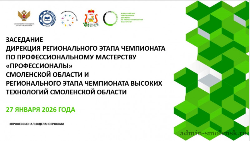В рамках подготовки к Чемпионату, 27 января состоялось заседание дирекции, которая создана с целью оперативного управления подготовкой и проведением регионального этапа Чемпионата. В состав дирекции входят представители Министерства образования и науки Смоленской области, центра опережающей профессиональной подготовки, образовательных организаций региона, выступающих площадками проведения регионального Чемпионата.